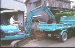 ブロックを敷くために余分な土を捨てます