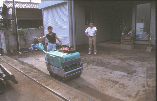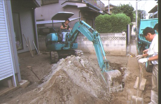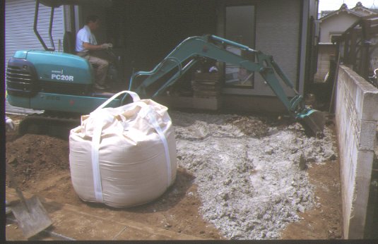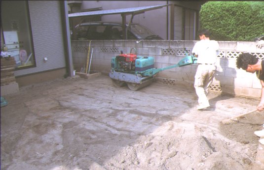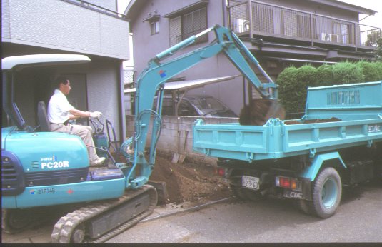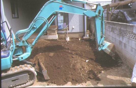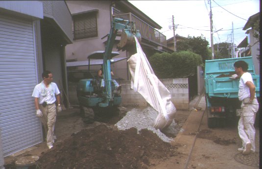 ブロックを敷くために余分な土を捨てます