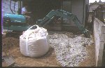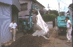 地盤改良剤を地盤に混ぜます