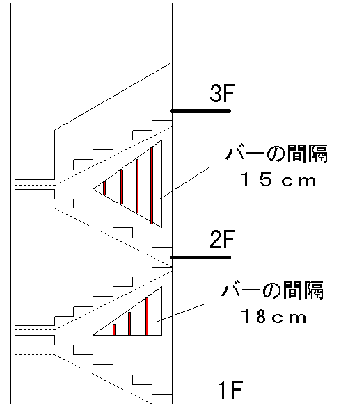 設計図面では転落防止用のバーの間隔は15cm以内となっているのですが、実際に